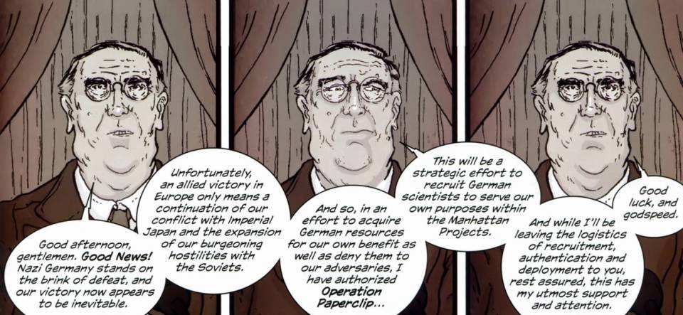 בסדרת המד"ב הפסיכדלית של ג'ונתן היקמן וניק פיטארה מככבים מדענים מפורסמים מהמאה ה-20, כחלק ממיזם סודי שהחל במלחת העולם השנייה ונמשך לאורך ההיסטוריה. לא משנה מה אתם יודעים על אלברט איינשטיין ורוברט אופנהיימר, גרסאות הקומיקס שלהם לוקחות תפנית לעולם הזוי של מדע פרינג' עם מדען ששרד דליפה גרעינית כשלד בוער תמידית בירוק, או איומי פלישה חוצניים. דמות משנה שחצתה את גבולות הקיום שלה (תרתי משמע) היא של נשיא ארה"ב במהלך המלחמה, שעם מותו מוחו ניצל ע"י אנשי MP והוסב למחשב על. עם האישיות והיכולות הנשיאותיות של רוזוולט, הנשיא בחייו החדשים מהווה נכס משמעותי לפרויקט. מבלי לספיילר יותר מדי, רק נגיד שלא הכל עובר חלק בלי תיכנות מחדש.
